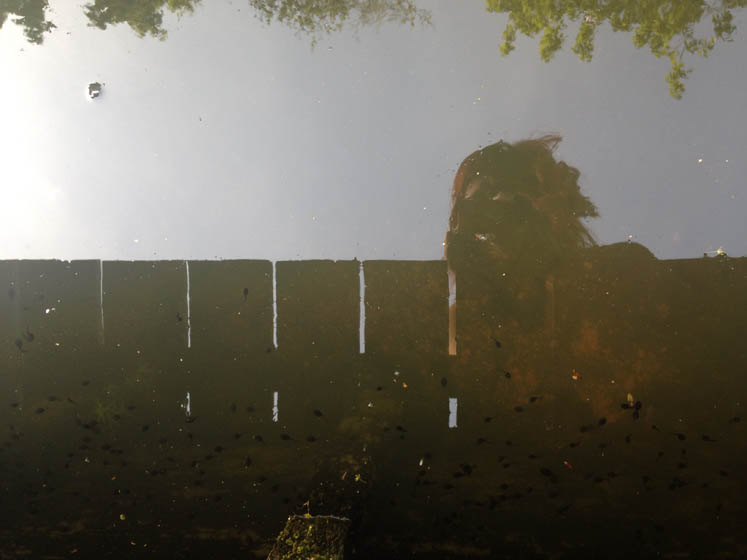 De mannen en Nina zitten de hele dag aan de sloot te vissen.