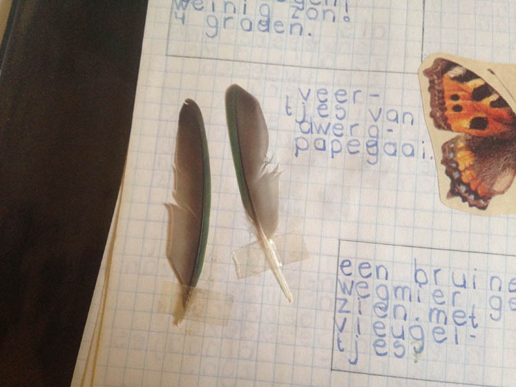 Ik ben druk bezig om een site op te zetten voor de dromenvangers en wil daar ook een stukje schrijven dat ik altijd al gefascineerd ben geweest door veren en vogels en kom m’n oude natuur-logboek tegen (van 30 jaar geleden)!