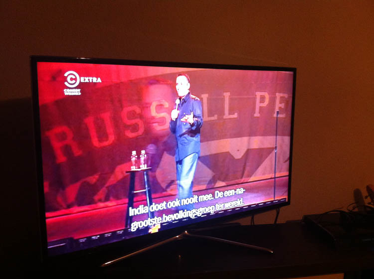 We sturen de meiden naar bed en de verkering en ik kijken nog even naar Russell Peters. Keihard lachen!