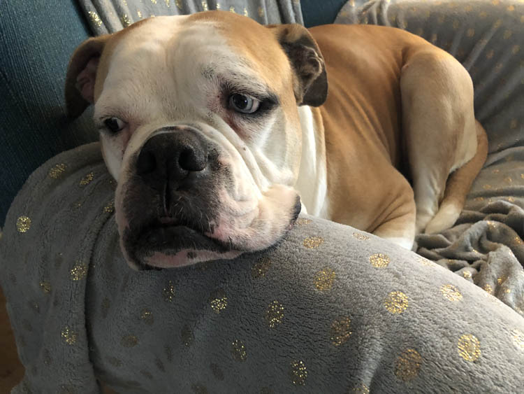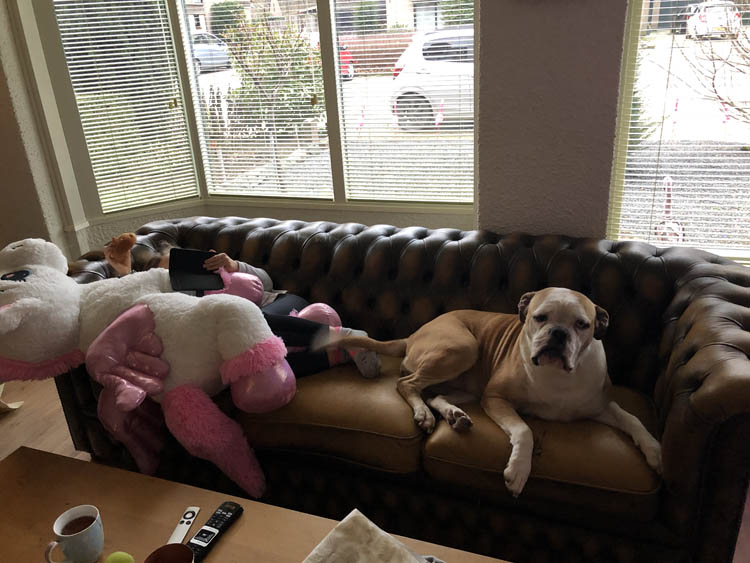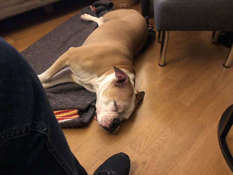 En dan beginnen de dagen waarop het buiten af en toe wat knalt. Nina houdt er niet van en met elke knal rent ze de trap op om bij te komen liggen of op de slaapkamer.