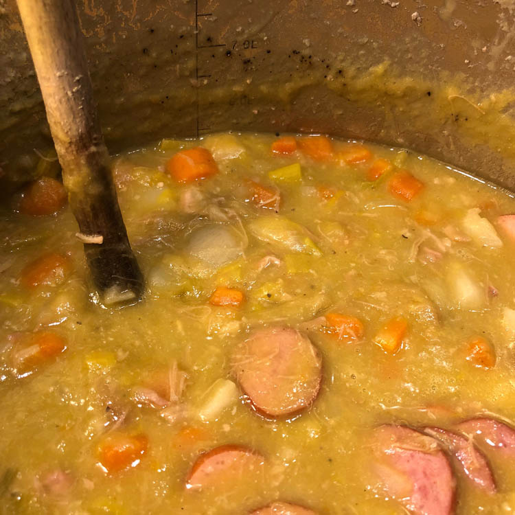 En ondertussen ook nog maar even 12 liter erwtensoep maken. SCORE! Voor ons, de diepvries en m’n ouders.