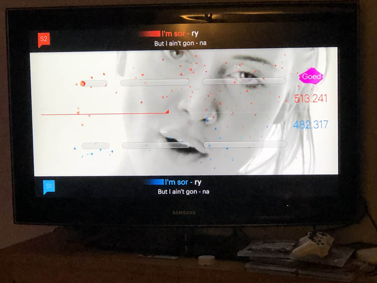 Derde kerstdag gaan we… Singstarren! Het is nogal een geregel met een Playstation, nieuwe microfoons en de spellen bij elkaar husselen, maar uiteindelijk krijg ik het voor elkaar.