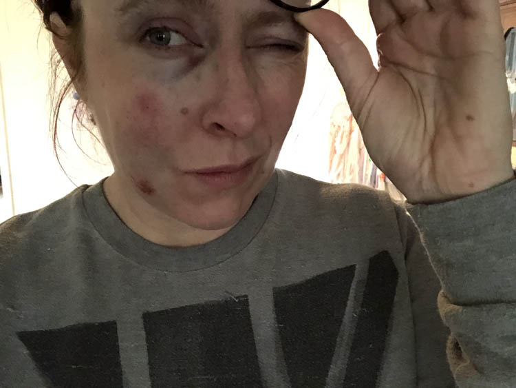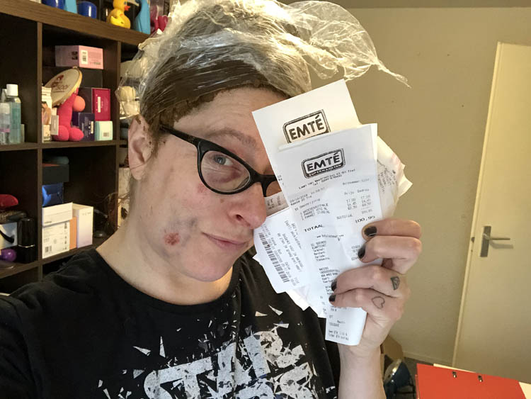 I have no shame. Dit is m’n wang en oog een dag later. Inclusief m’n haar in de henna, want dat moest ook gebeuren en omdat ik me toch al zo ellendig voel; die kut-administratie er ook nog maar achteraan. This is the real life, this is reality!
