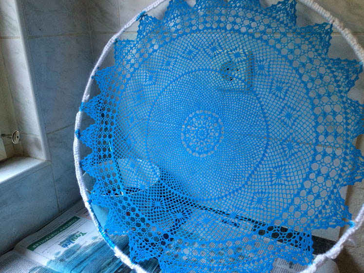 Ik verf deze XXL dromenvanger blauw! Is een opdracht voor in een chique Amsterdams kantoorpand-achtig iets!