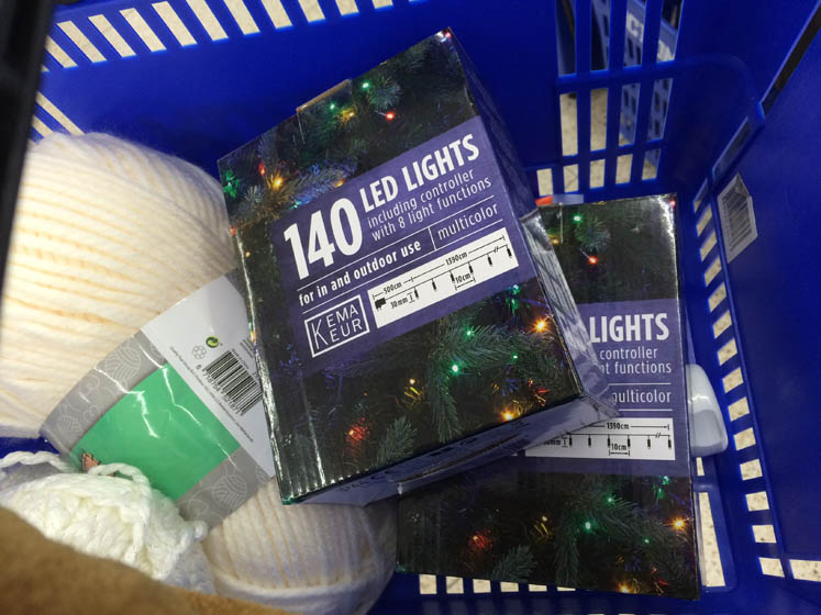 En ik fiets even snel naar de Action voor kerstboomlampjes. Toch maar gewoon met een groen snoer, want ik wil de boom NU optuigen en niet nog langer wachten.
