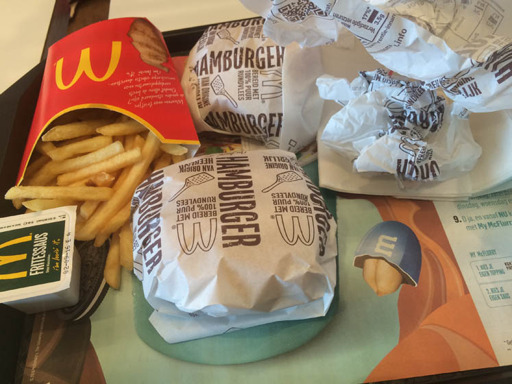 De puber en ik brengen even snel een bak van die overheerlijke Tikki Massala die ze gisteren maakte naar m’n ouders en fietsen daarna snel door naar het station. We eten een broodje in de trein.