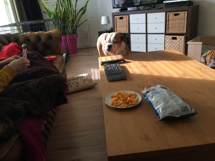 Hé, waar is de ochtend gebleven? Die is als een gezellige, grijze mist voorbij gegaan. Note to self; als het niet lukt om een stuk te schrijven, dan moet je het niet gaan forceren of gaan klikklikklikkerdeklikken op internet, maar gewoon een stuk gaan wandelen. Gelukkig is daar de oppaspuber alweer en mogen we chips.