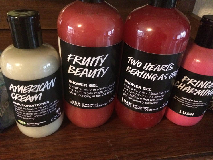 Okay, okay, get over yourself! Moet je kijken wat een rijkdom!!!! Allemaal nieuwe Lush-dingetjes voor onder de douche! Ik hou er heel veel van. De oppaspuber ook.