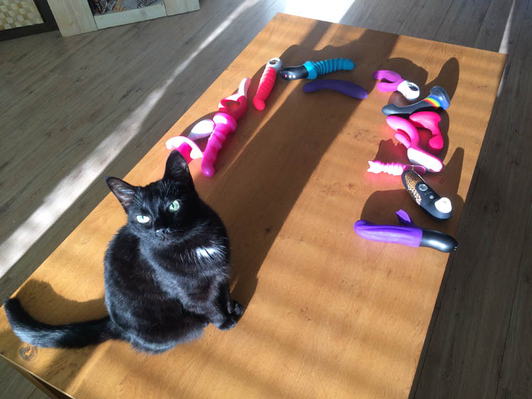 Ik ben deze ochtend geïnterviewd en gefotografeerd door een studente journalistiek. Die was bezig met een opdracht over seksualiteit en seksspeeltjes en ja, daar weet ik natuurlijk alles van! Van seksspeeltjes dus… en ja, voor dit soort dingen maak ik tijd, ook al heb ik er zelf niets aan. Bruce was een beetje verliefd op de studente en is uitgebreid door haar beknuffeld, dus voor Bruce was dit zeker geen weggegooide ochtend.