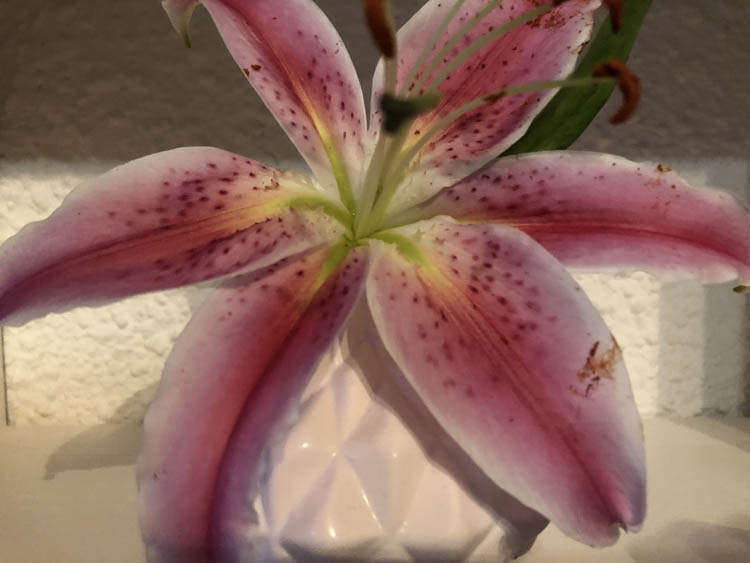 De lelie van vorige week zaterdag komt eindelijk uit. Duurt even, maar dan heb je ook wat.