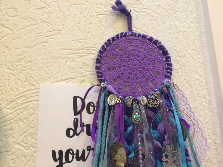 En nog veel meer moois, ik word er zelf altijd zo blij van als ik de rand van de dromenvanger ga versieren. Nu word ik van het hele proces blij, maar het uitzoeken van de bedeltjes vind ik misschien wel het leukste.