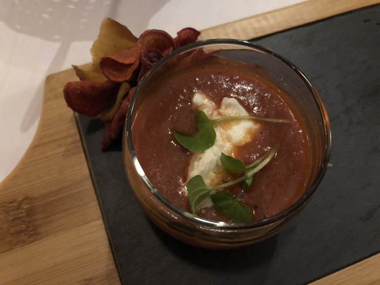 Gazpacho! Lang geleden dat ik dat at (is het al lente) (is het al zomer)!!! Maar heerlijk met een stukje mozzarella erin.