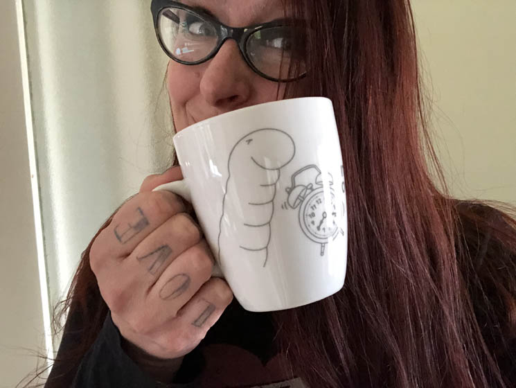 Van 1 van mijn lievelings-sekstoy-merken krijg ik een mok! Ik vind ‘m leuk! Het is Patchy Paul, hun iconische vibrator. Geinig.