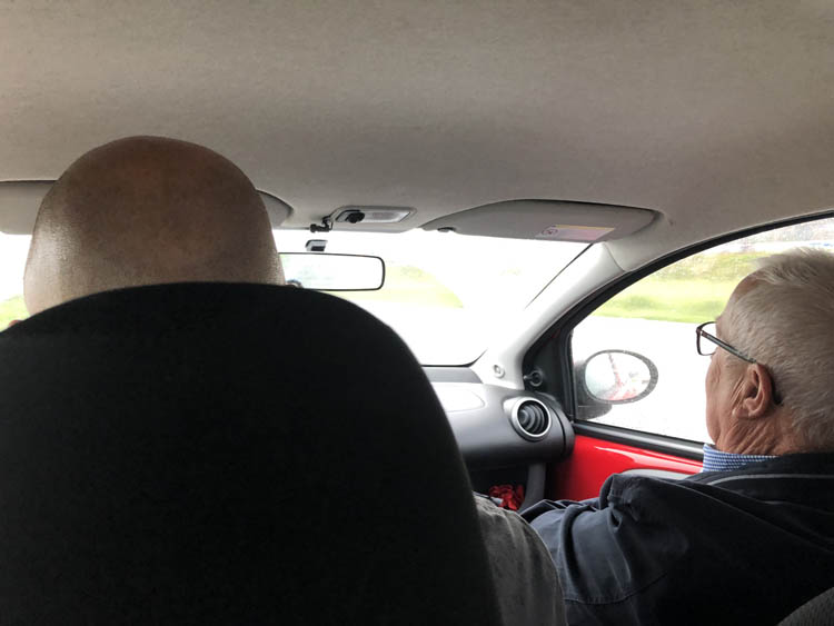 En onderweg. We zijn vroeg vertrokken, want je weet maar nooit of er files zijn, maar die zijn er dus niet.