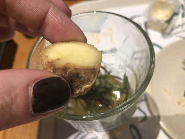 Dit stukje gember. Ja, doei. Wel lekker, dus ik moet niet zeiken.
