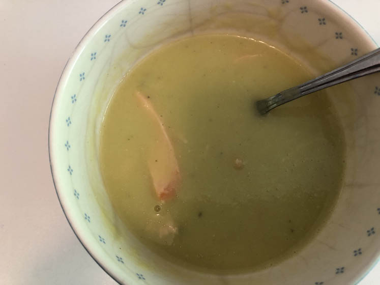 Ik maak een aardappel-prei-roomsoep met zalm.