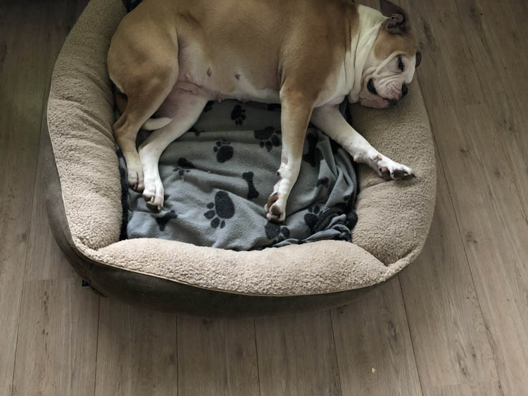 Nina ligt heerlijk met d’r kont tegen de verwarming.