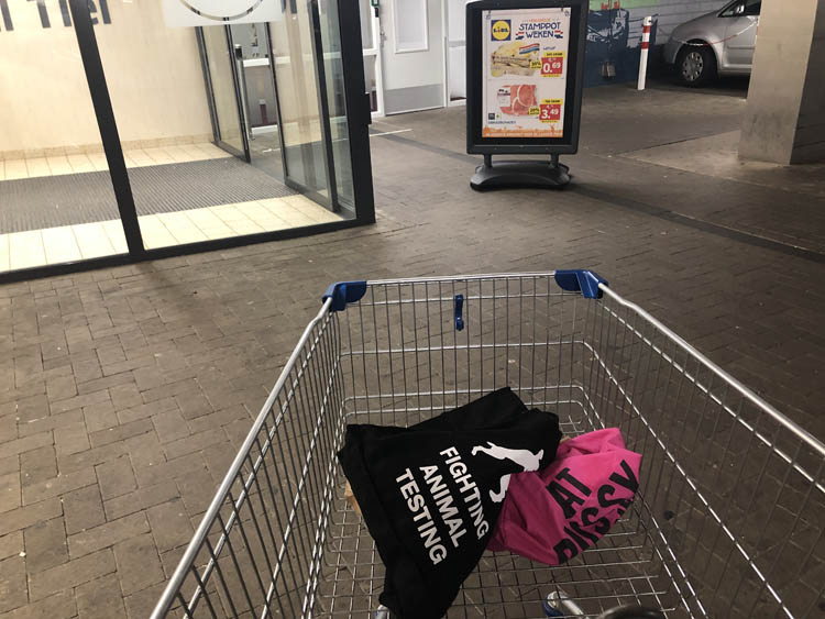 Op de fiets met vier zelf meegenomen tassen. Veel klimaatvriendelijker gaat het niet worden. Bravo!