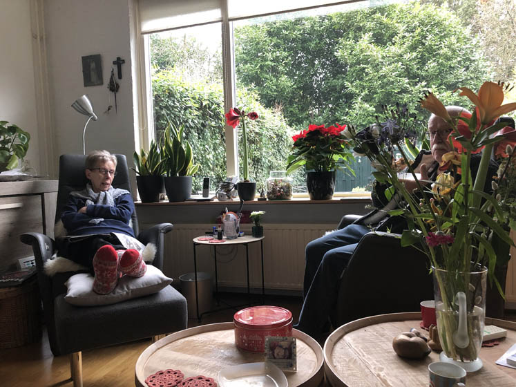 Even op de koffie bij deze 2 knapperds! We brengen verse bloemen (dat doen we elke zaterdag)!