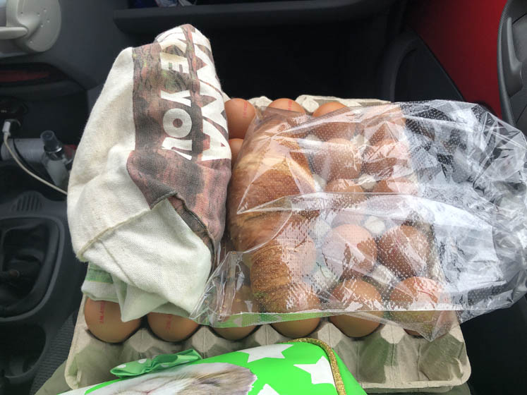En we krijgen verse eieren mee terug (dat krijgen we eens in de 2 weken)! Goeie deal.