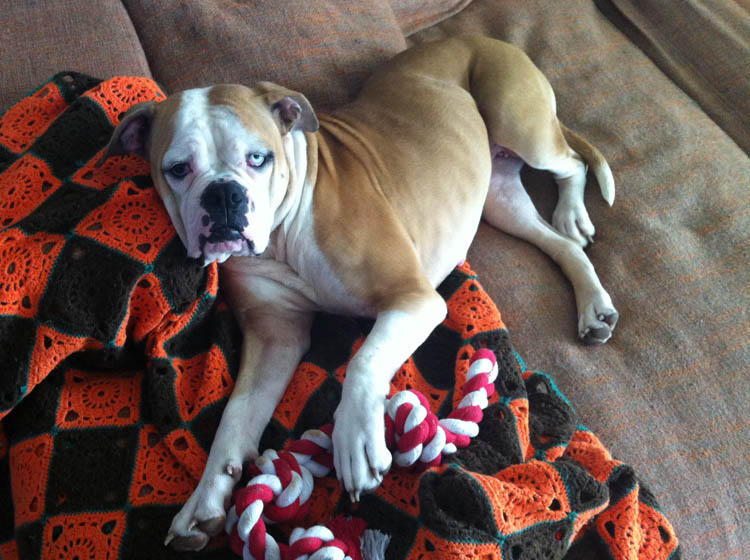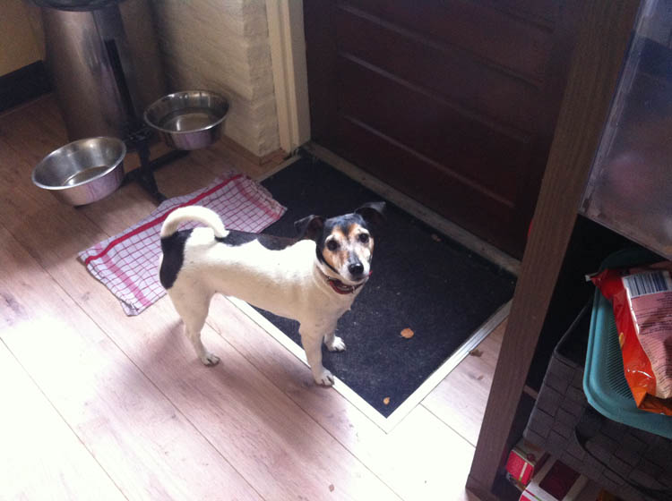 Hier heb ik Scooby net verteld dat ik een figuurcorrigerende slip heb gekregen voor Valentijnsdag. Hij wist niet wat hij hierop moest zeggen, dus zei hij maar niks.