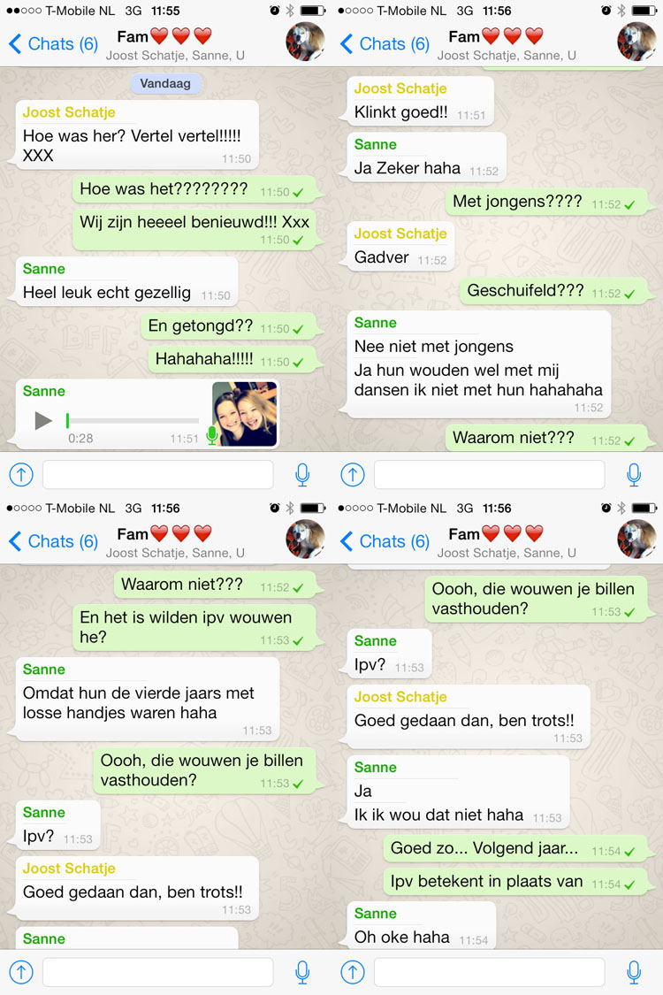 Even geinen in de familie-Whatsapp… Dochter S. is dit weekend niet bij ons, want ze had gisteren een Valentijnsgala! Woehoe!