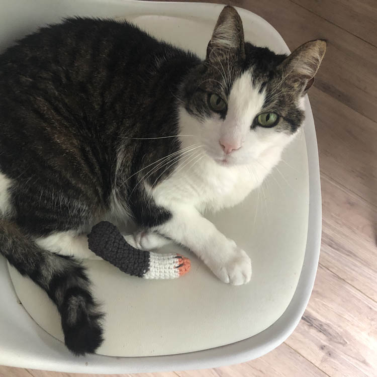 Frank krijgt van lezeres Anke een gehaakt pootje opgestuurd! Hoe zoet!