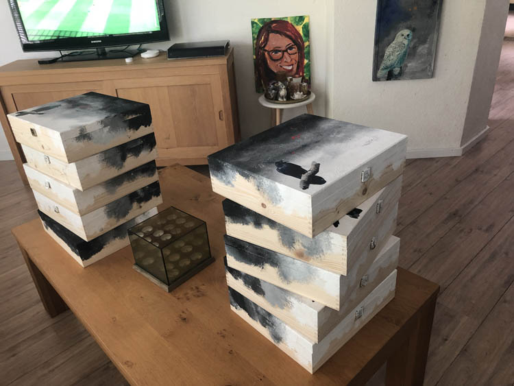 De boxen zijn droog en moeten nog gestempeld worden. Op de achtergrond; het vrouwen-voetbal. M’n ouders komen nog even de verjaardag van m’n moeder hier vieren met een etentje!