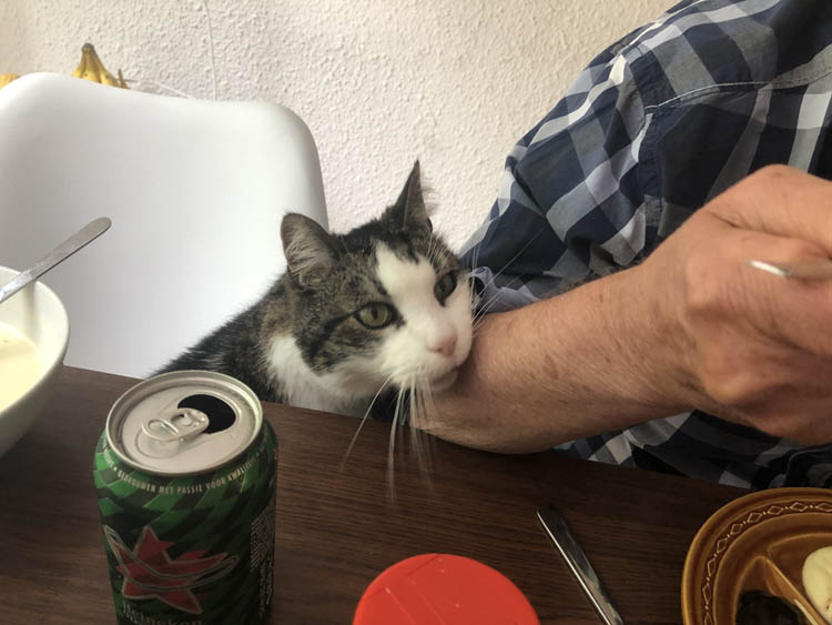 Na het eten laten we Nina uit. Ja, heet is het hè? Maar je gaat zelf in de zon lopen… de schaduw is links!