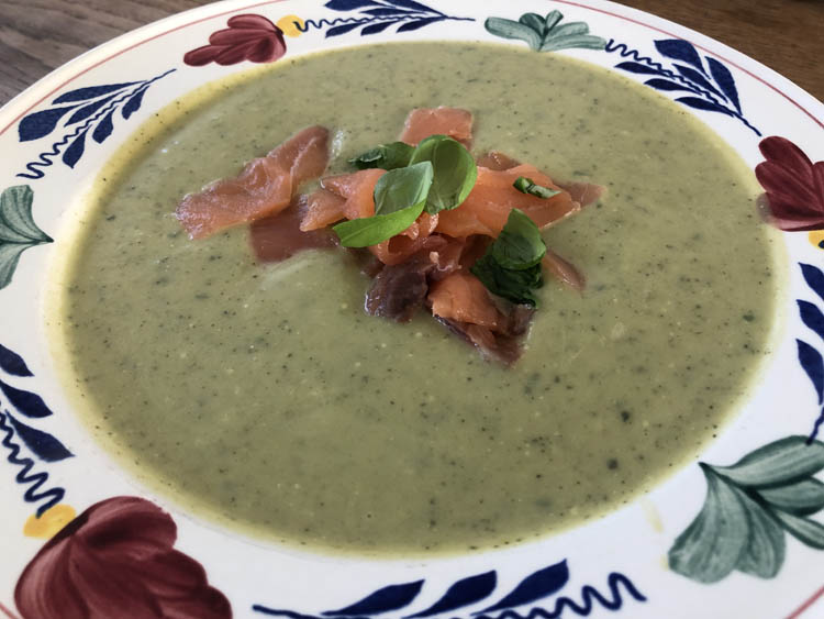 En dit was ook smullen! We zijn inmiddels bij vrienden R. en N. aanbeland en die hadden een heerlijke courgettesoep met zalm voor de lunch klaarstaan!