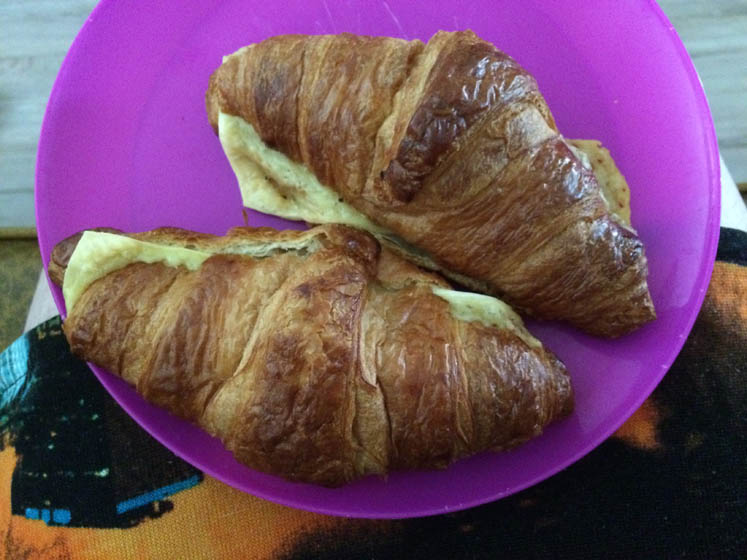 Ontbijten met een croissantje uit de oven.