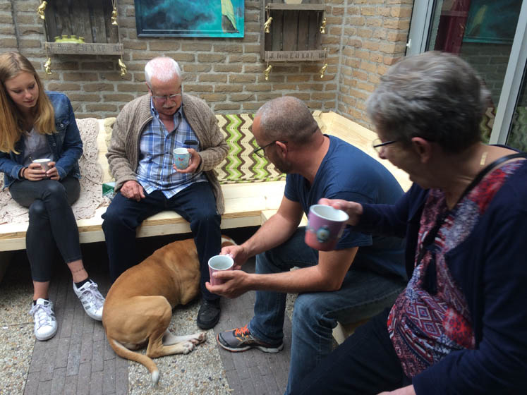 We doen de koffie gewoon thuis. Op de nieuwe loungebank! Woehoe!