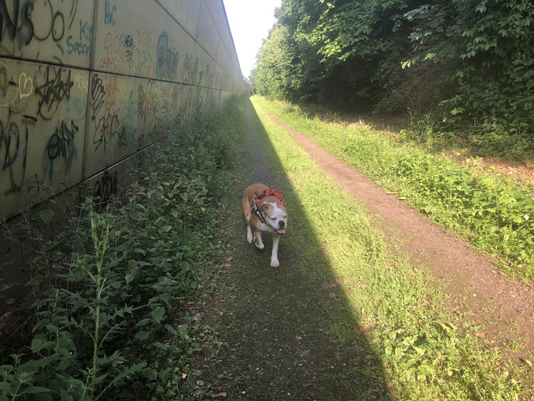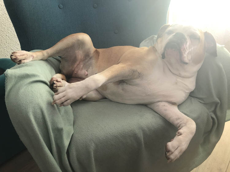 Thuis laten we Nina uit, die heel verstandig, toch maar in de schaduw gaat lopen.
