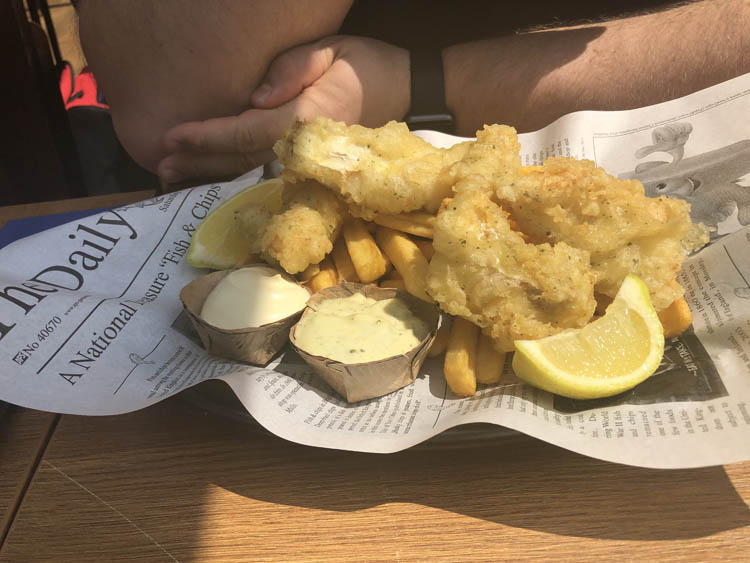 Dan heb ik mazzel, want er komt een heerlijke fish & chips op tafel! Met vis en een tempura-beslag! ZALIG!