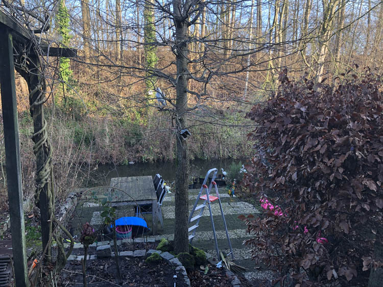 Ik kan in ieder geval zien dat de pink flamingo’s een ander plekje hebben opgezocht, van de voortuin (kerst) naar de zijkant van de achtertuin, naar de tafel om rond de boom te eindigen. Een fleurig gezicht.