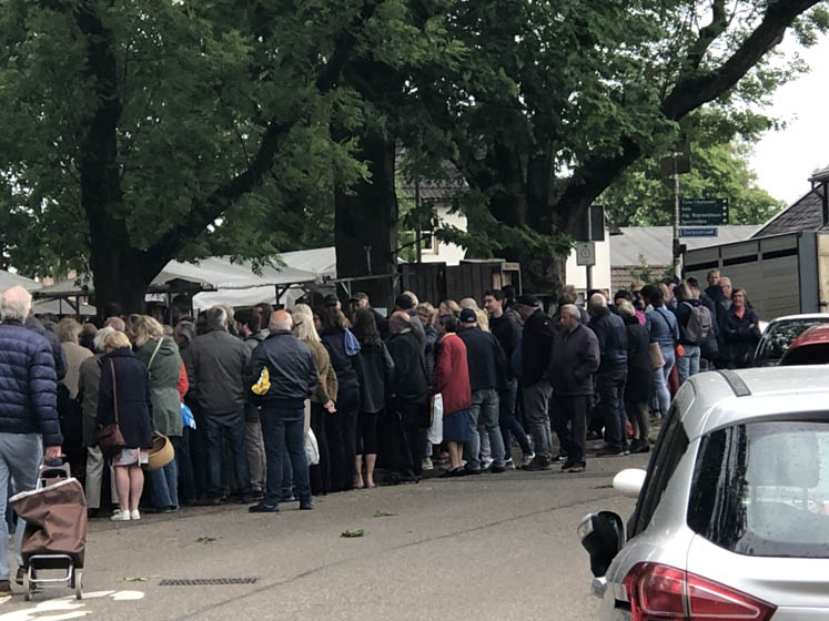 We zijn blijkbaar niet de enigen die het idee hadden om stipt op tijd bij de rommelmarkt van de kerk in Kerk Avezaath te zijn. Jesus, wat een hoop mensen. En als de klokken van de kerk 9:30 slaan gaan de hekken open, maar springen er ook allerlei mensen over het hek en over het muurtje rondom de kerk, want ze willen als eerste bij de tweedehands fietsen, schoenen en gereedschap zijn. Okay, prima! Wij lopen richting de gehaakte kleedjes en de puzzels om daar vet te scoren!