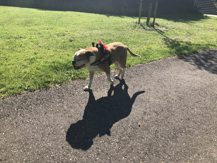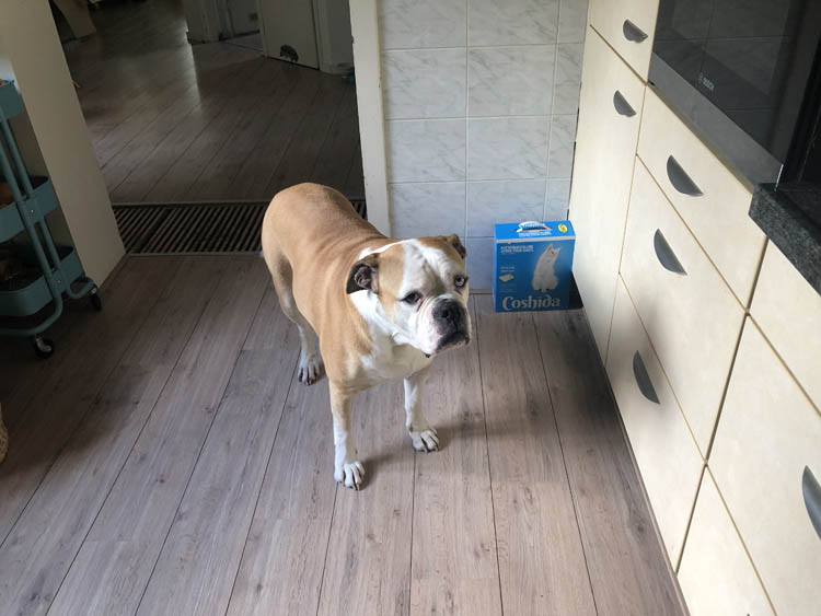 Thuis laten we deze dikke dame weer uit. Ze heeft er weinig zin in.