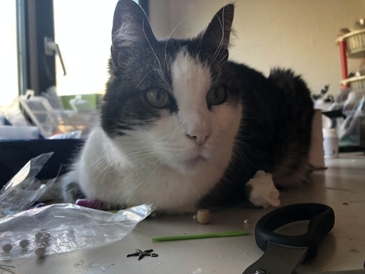 Kater Frank is in m’n atelier gaan liggen. Dat is iets nieuws van ‘m.