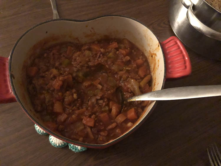 Die komt even een hapje mee-eten namelijk! Ik had spaghetti bolognese gemaakt, altijd lekker.