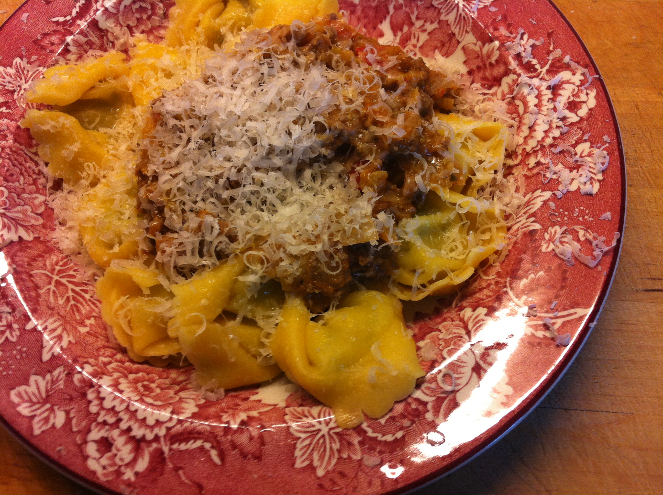 De verkering, oh, nee, m’n verloofde, HAHAHA, is thuis en ik maak voor ons, ondanks m’n pijnlijke nek, een lunch-pastaatje.
