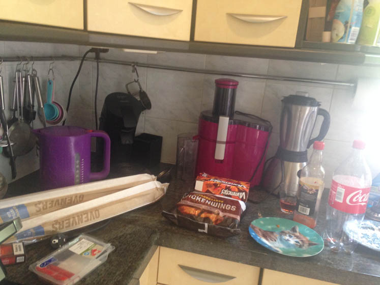Nog meer snacks. Vrijdag hadden J. en ik het hele huis keurig opgeruimd. Nu is alles weer ontploft.