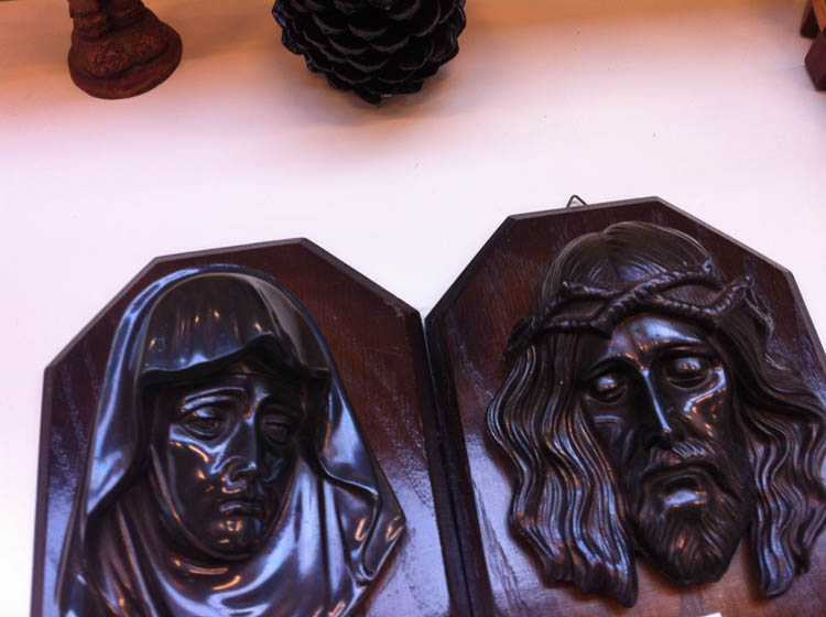 Die kringloop bij ons in Tiel is niet heel geweldig hoor… vooral heel duur… De kringloop-winkels in het oosten van het land, die waren pas goedkoop! En daar, en in het zuiden, heb je waarschijnlijk NOG meer religieuze spulletjes!