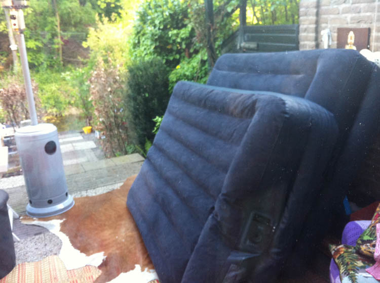 Hmmm… 1 van de opblaasbedden is ingezakt en heeft dus nog steeds een gat.