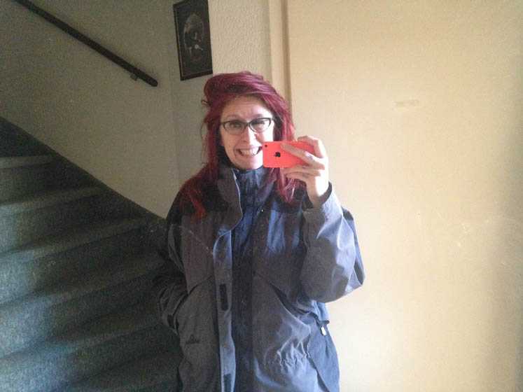 Kijk! Echt! Met de jas en de laarzen van J. word ik door niemand herkend! Sexy hè?