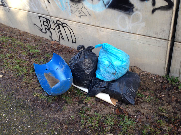 Op de plek waar ik Nina altijd uitlaat is een hoop vuil gedumpt.