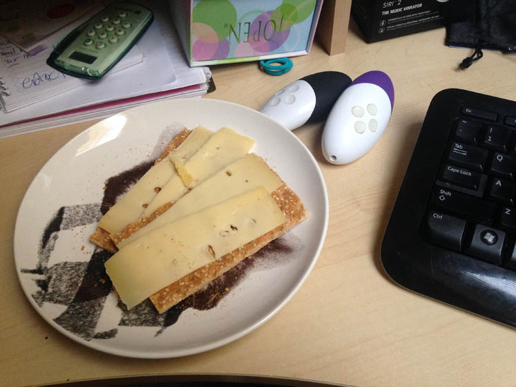 Kijk eens; een hartstikke gezond kaasplankje voor het slapen gaan. Niks goors aan.