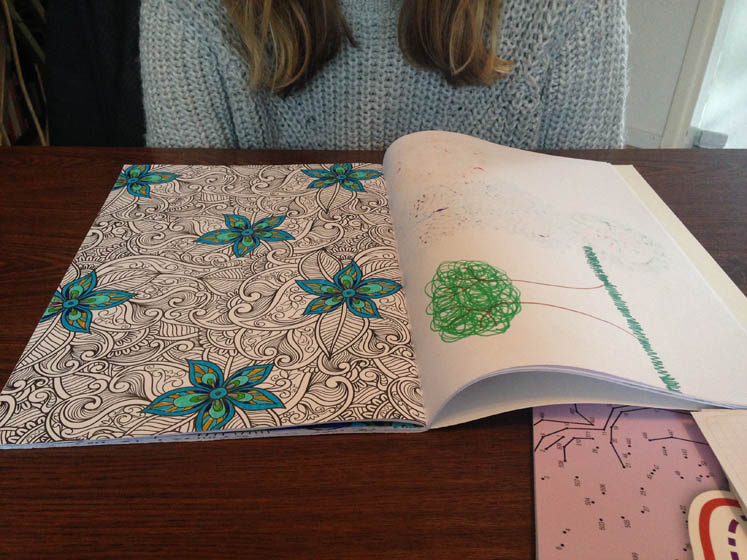Weer een paar uurtjes verder! Heel braaf aan het kleuren.