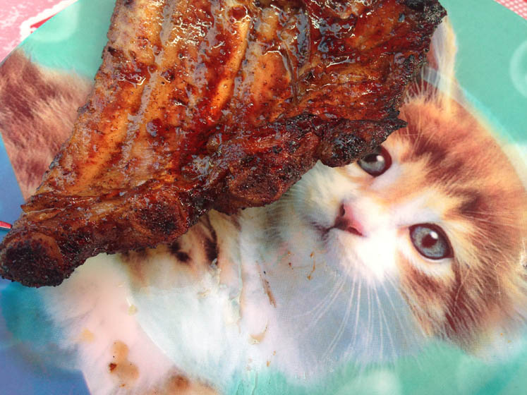 En ge-BBQ’t! De spareribs zijn zeer goed gelukt! Hmmmmm… Maar ik eet niet zoveel, want er zit nog steeds iets niet lekker in m’n lijf met die ijskoffie van gisteren.